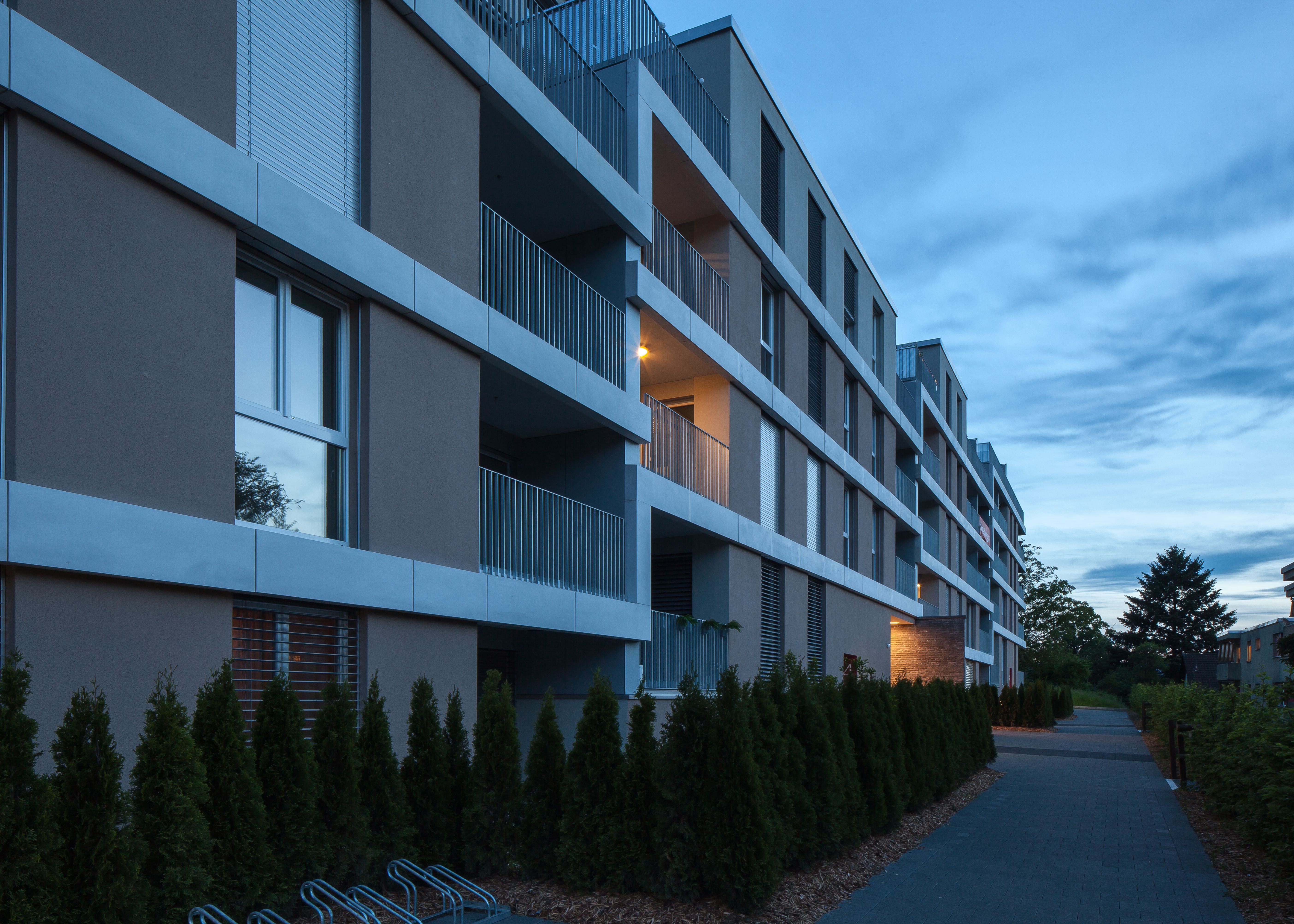 Der Gebäudekomplex besteht aus 45 Wohnungen, einer Einstellhalle und einem weitläufigen Aussenbereich. Die Grundrisse teilen sich auf 2,5- bis 4,5-Zimmer-Wohnungen auf. Alle Einheiten ab 3,5 Zimmern besitzen zwei Aussenräume und sind als „Durchschuss“ zweiseitig angelegt. Die Loggien orientieren sich nach Süden und Norden. Die Neubauten in Massivbauweise mit Aussenisolation erreichten eine Minergie-Zertifizierung.